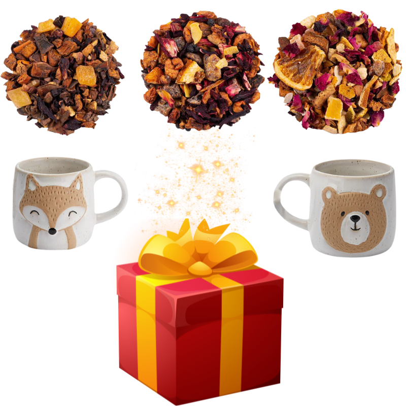 Ovaj pažljivo odabrani paket sadrži 3 božićna čaja od 50g te dvije šalice "Lija" i "Medo":
